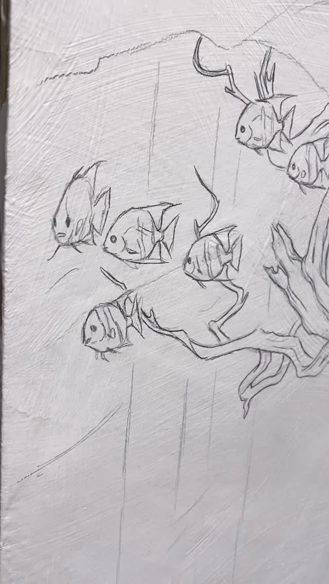 Sarah Finnigan is a Texas-based artist who found her way to art in a circuitous manner. Feverishly pursuing music from a young age, she attended college for tuba performance but found herself distracted from practice when she fell in love with art. Her inspiration is built on a youth spent getting lost in adventure games, exploring in the woods, and being captivated by astronomy and the night sky.